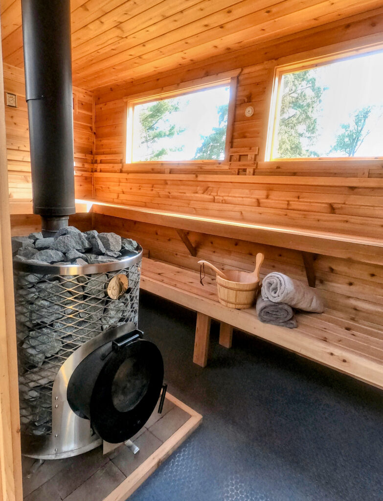 At the heart of our Sauna we have the IKI Sauna stove, designed and hand made in Finland. This stove will give you an amazing Sauna experience! We feel wood fired Sauna provides the best and most authentic Sauna. Just add water to steam it up. So try it for yourself and see what you’ve been missing!